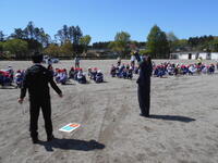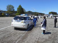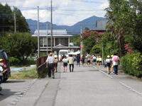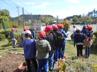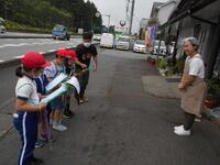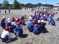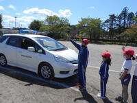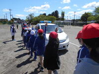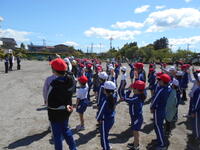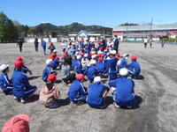 2年生が無事到着しました。付き添いのボランティアさんにお礼を言います。