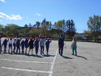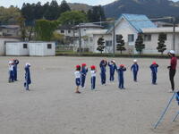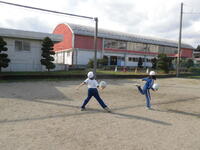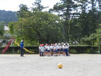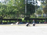 6年体育、キックベースボールのゲーム。6年生はさすがに飛ばします。