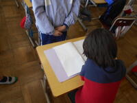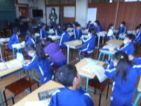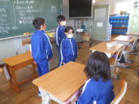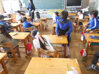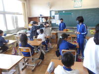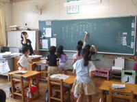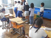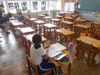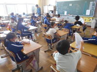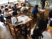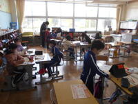 昼休み、2年生がかけ算九九を暗唱するチャレンジです。ボランティアの方が聞いてくれました。