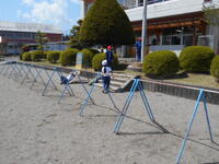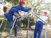 少し風がありますが穏やかに晴れて、昼休みはドッジボールや鬼ごっこで遊んでいます。