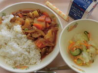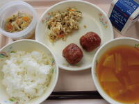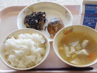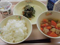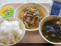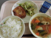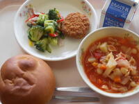 今日は、轟小学校創立150周年記念献立です。シンボルカラーのオレンジが献立のテーマです。