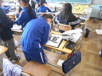 4年図工、版画です。下絵ができた人から彫刻刀で彫り始めます。