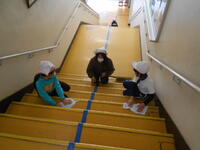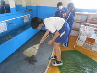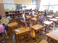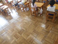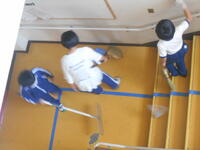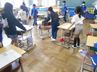 掃き掃除を高学年、拭き掃除を低学年が担当します。