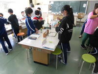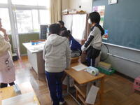 4年理科、電池と豆電球のつなぎ方を考えています。