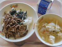 元気アップ週間中、食事中の姿勢に気を付けるよう、放送が流れます。
