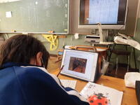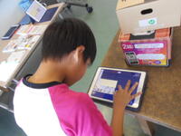3年算数、単位の学習プリント、タブレットに書き込みます。