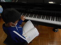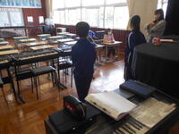 6年音楽、合奏のパート練習。キーボード、木琴、鉄琴などです。