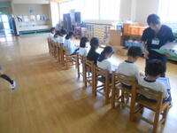 2年音楽、「すいかの名産地」の歌に合わせてじゃんけん、リズムを楽しみます。
