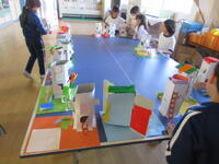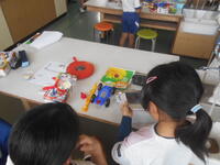 6年図工、クランクを利用したおもちゃ作品が完成しました。