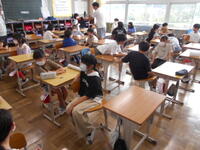 5年体育、プールが入れなかったので、代わりに保健の授業です。がんばっています。