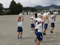 業間を拡大して、班ごとにドッジボール、中線ふみ、けいどろなどをして遊びました。
