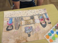 2年図工、不思議なたまごから生まれるものを描いています。自由なアイデアです。