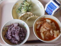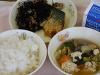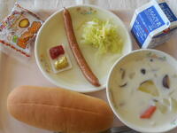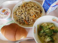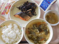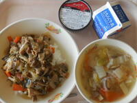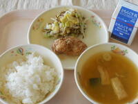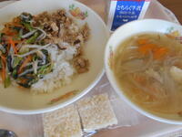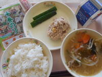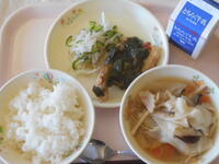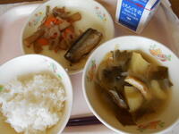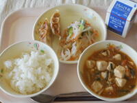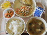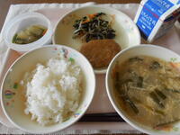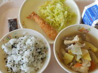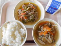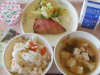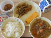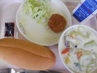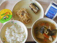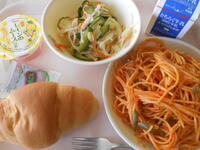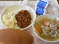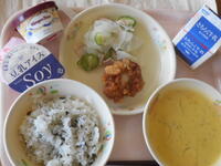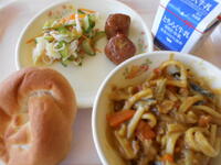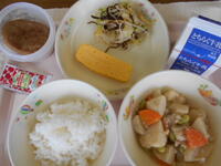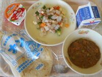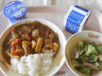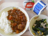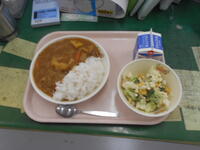 久しぶりの給食、メニューは人気のカレーです。海藻サラダもなかなか人気です。