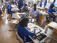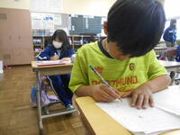 6年総合、修学旅行のまとめの一つ、添乗員さんにお礼の手紙を書いています。
