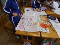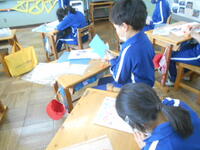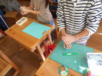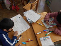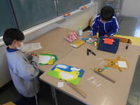 4年図工、身近な人へのメッセージカードを作ります。開けると飛び出すカードです。