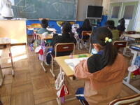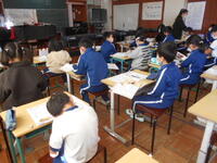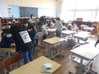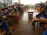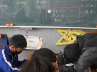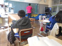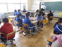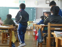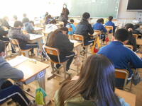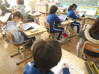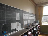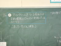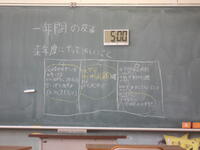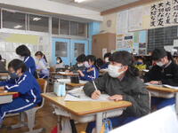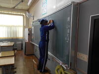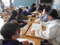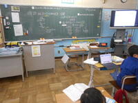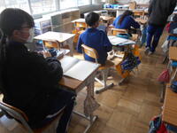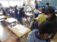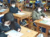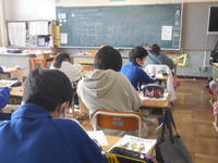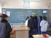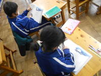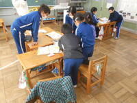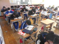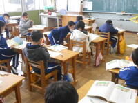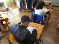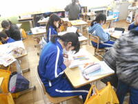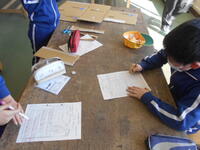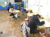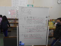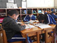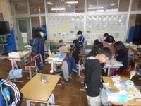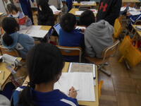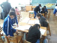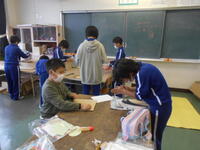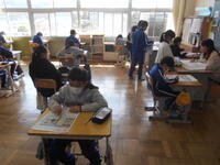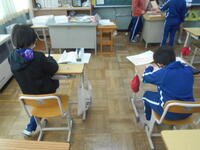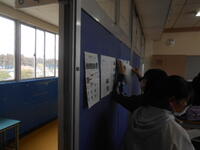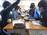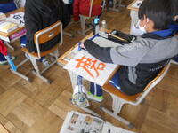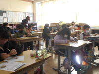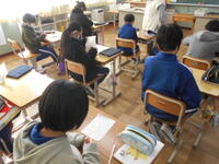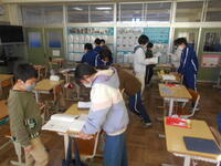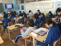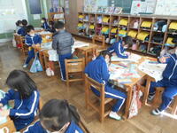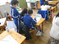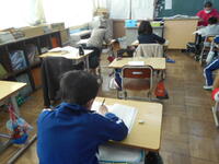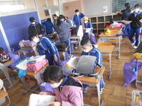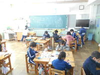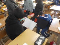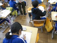 4年、5年学活、3学期の係を決めています。決まったところは係の紹介を書いています。