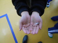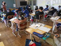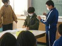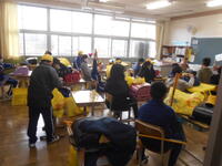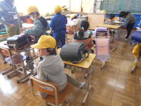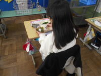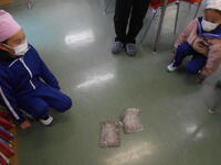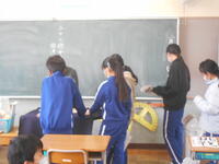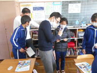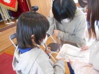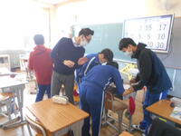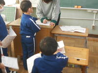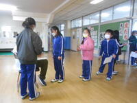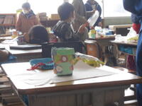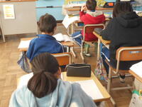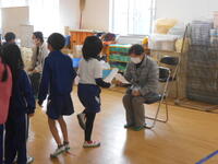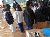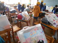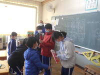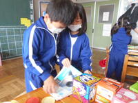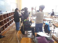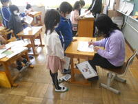 6年英語、袋の中に何が入っているか手探りで当てます。会話はもちろん英語です。