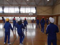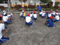 3年体育、準備運動です。元気のよい号令が聞こえます。