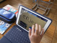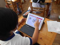 2年算数、教科書の問題のあとは、タブレットでドリル学習です。