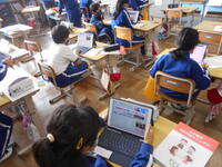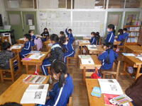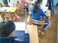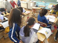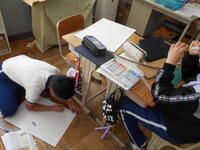 4年国語、新聞ができあがり、ほかの人のを見て、振り返りを書きます。