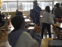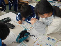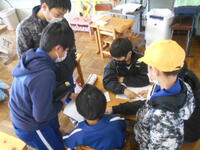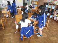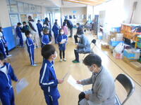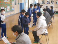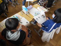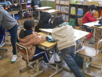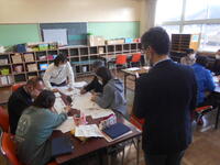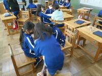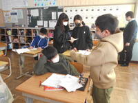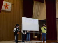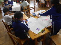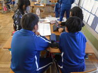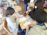 たてわり班で遊ぶかどうか、友達の考えを聴いています。