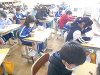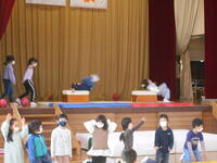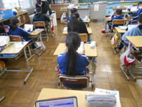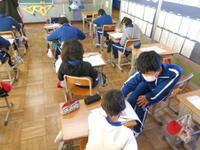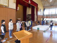 終業式は、各教室の画面を見て放送を聞いて参加しました。休み中は家の生活が中心であること、大切にするのは学校と変わらず「人のいやがることをしない」「失敗したらやり直す」であることと、話がありました。