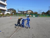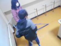 係の人がルールについて、確かめています。そのあと、楽しくゲームしました。