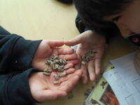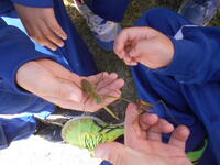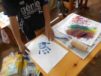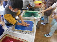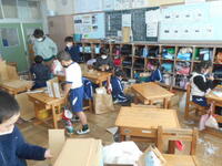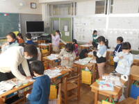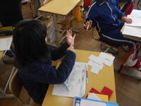 1年図工、紙をちぎっていろいろな形に見立てます。