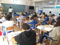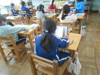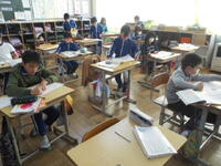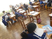 3年理科テスト、テストが終わると読書やタブレットのドリルなどして過ごします。