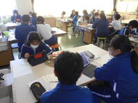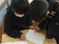 2年国語、友達の書いた文章を読んで、よい点などを伝えています。