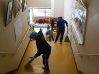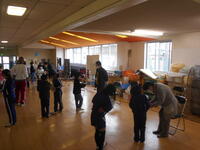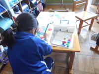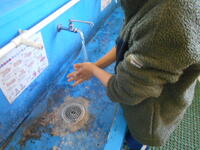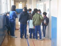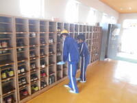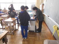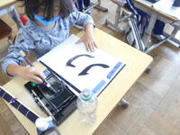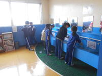 3年書写、習字セットの片づけ、水道では、墨で汚れてしまった排水のところをきれいにする人が何人もいて感心しました。