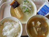 今日は冬至(とうじ)です。カレーにはカボチャ、サラダにはユズ、それぞれ入っています。