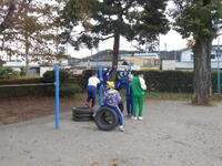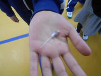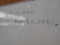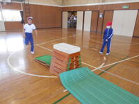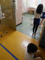 1年体育、鉄棒が終わって、給水タイム、次の運動について聞きます。