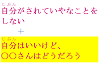 1つめは「人のいやがることをしない」ときに気をつけたいこと、2つめは安心して話せるようにするにはどうしたらよいか、です。