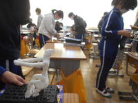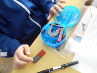 3年理科、電気を通すのはどんなものか実験から考えます。