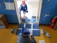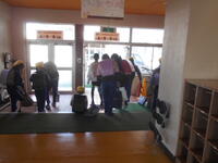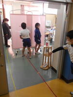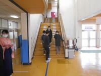 学校運営協議会の委員さんが見ています。このあと会議をします。