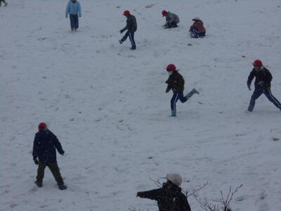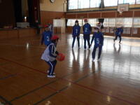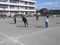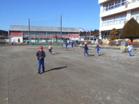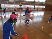 6年生は、ドッジボールをしています。このあとボールが2個に増えました。
