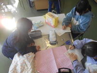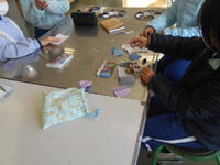 5年家庭、練習の布を使って、波ぬいを練習しました。