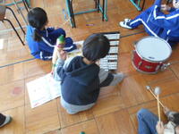 2年音楽、「すいかの名産地」の歌に合わせてじゃんけん、リズムを楽しみます。