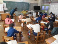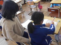 1・2年生は、2年担任とお別れの会をしました。赤ちゃんができるのでお休みに入るためです。