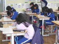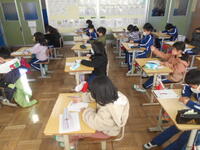 昼休み、2年生がかけ算九九を覚えているか、挑戦しています。