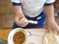 食に関する授業をしてくださいました。食事の大切さや、栄養バランス、おやつについてお話と、実験やクイズをして理解を深めました。