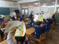 今朝は、読み聞かせでした。今年最後です。大判絵本を抱えてきてくださいました。