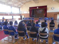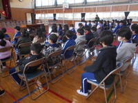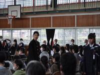 全校生に向けてお別れのあいさつです。みんな元気でがんばってください。