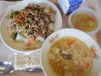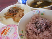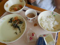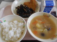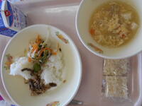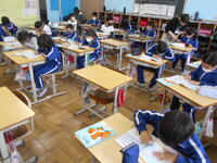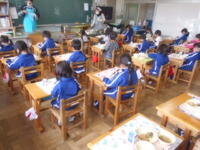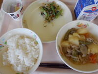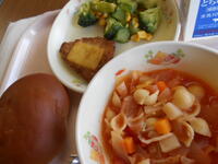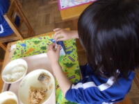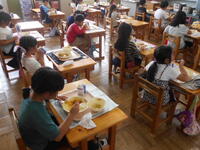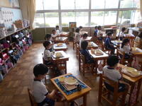 給食が終わる頃に、よい姿勢のポイントについて放送が入り、それを聞いて自分の姿勢を見直しています。健康のため、無理のない範囲で、よい姿勢が意識できるように励ましたいです。