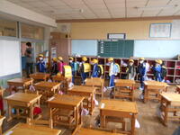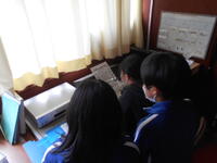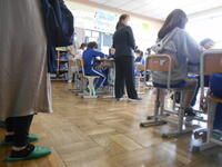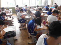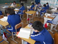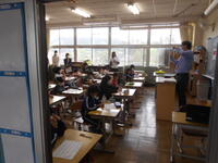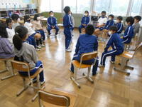生徒会役員による、豊岡中学校の紹介を聴き、校舎内を見て回りました。授業の様子も観られました。