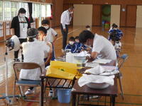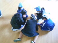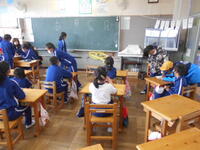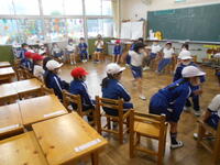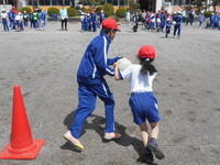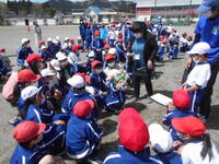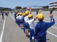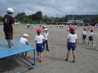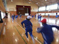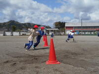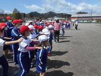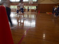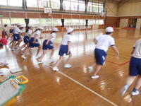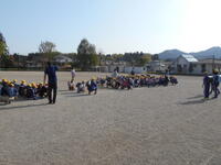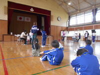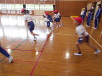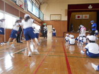 体育館に戻り、交流ゲームをしました。来年は大桑小と轟小のほか、今市第二小、小林小から入学する子がいます。