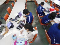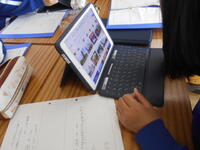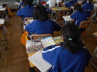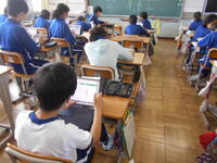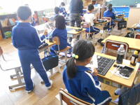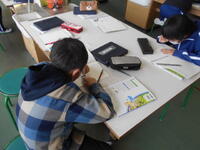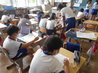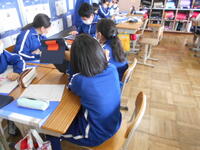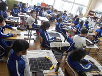 4年社会、二宮尊徳の行いを新聞などにまとめています。実習生による授業です。
