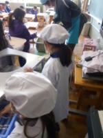 5年家庭科、小物を作っています。波ぬいに挑戦しています。
