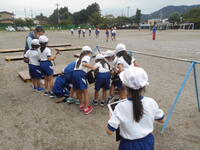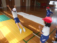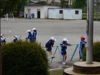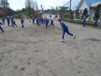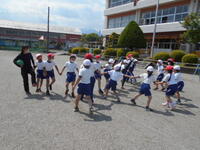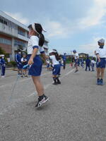 業間、天気がよくなってぽかぽかしています。リズムなわ跳びにチャレンジしています。